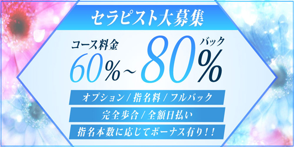 当店は完全新規店で系列店などは一切ございません。 ワンルーム完全個室のマンションになります。 当店はセラピストさんの働きやすさを一番に考え その上でしっかり稼げるお店作りをして行きたいと 考えております!! セラピストさんからの意見などはしっかり聞いていきます! 働く上で環境は一番大事だと思うので なんでもご相談下さい!! 当店でお仕事をして頂き業界を卒業するまで しっかりフォローしていきます! ぜひ一緒にお店を盛り上げて行きましょう!! ご応募お待ちしております!