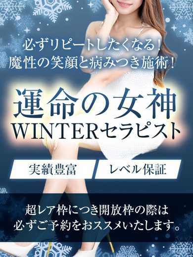 超人気セラピスト! ご予約困難! レア出勤! 某店舗で圧倒的人気を誇った彼女! 実際にそうなのですが、なかなかピッタリの表現が難しいセラピストです! 言葉では言い表わせないホスピタリティ溢れる美形セラピストになります! 空き枠を見かけた際は必ずご予約をおススメいたします!