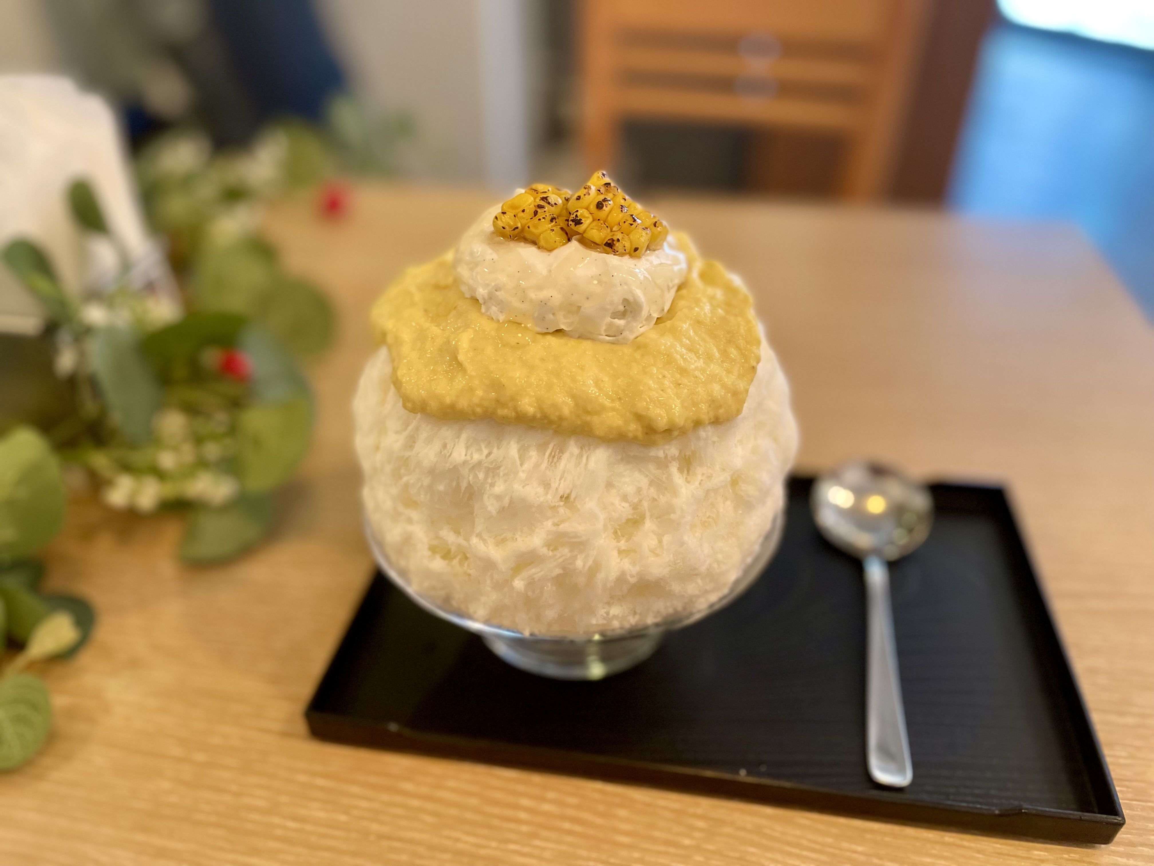 今の時期ね、とうもろこしのかき氷が出てきてて⊂( ᴖ ̫ᴖ )⊃🌽🌽🌽